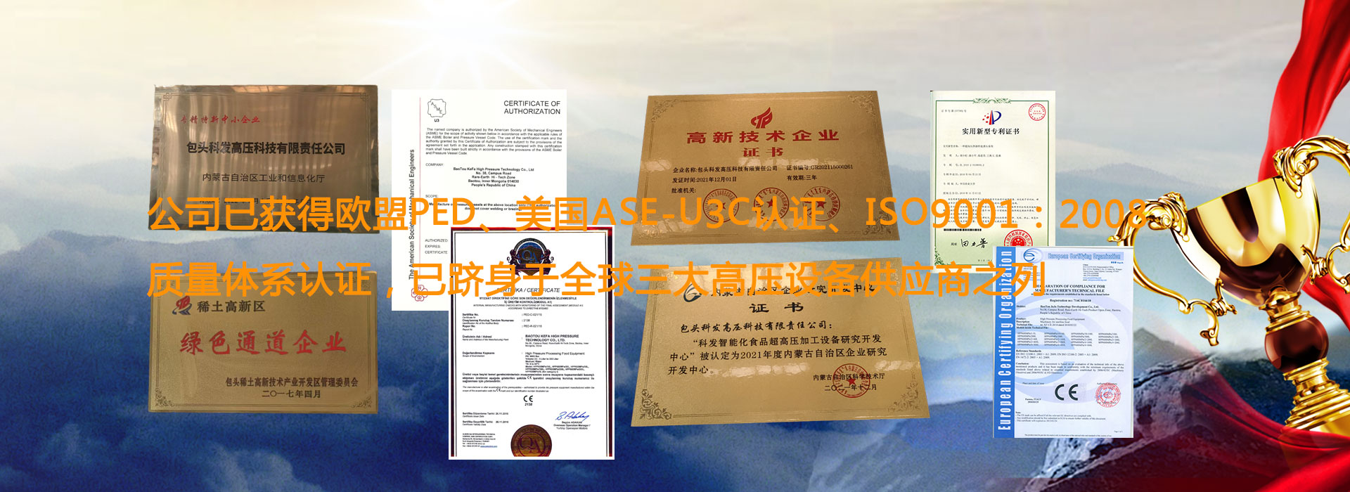 包頭科發(fā)高壓科技有限責(zé)任公司是 2001 年在包頭稀土高新區(qū)成立的高科技民營企業(yè).已獲得國家高新技術(shù)企業(yè)、內(nèi)蒙古自治區(qū)企業(yè)研究開發(fā)中心證書和內(nèi)蒙古工信廳“專精特新”企業(yè)。主要致力于超高壓技術(shù)及裝備、非熱加工技術(shù)及裝備、冷熱等靜壓技術(shù)及裝備、超高壓食品加工技術(shù)和超高溫等靜壓電芯新材料技術(shù)的研究開發(fā)、設(shè)計、生產(chǎn)、銷售及冷熱等靜壓新材料和新型食品高壓加工技術(shù)的推廣。公司技術(shù)力量雄后,擁有高級工程師三名、博士一名...